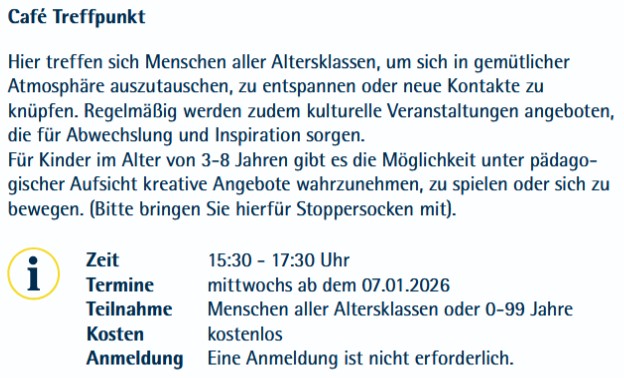 Offener Treffpunkt für alle Altersgruppen